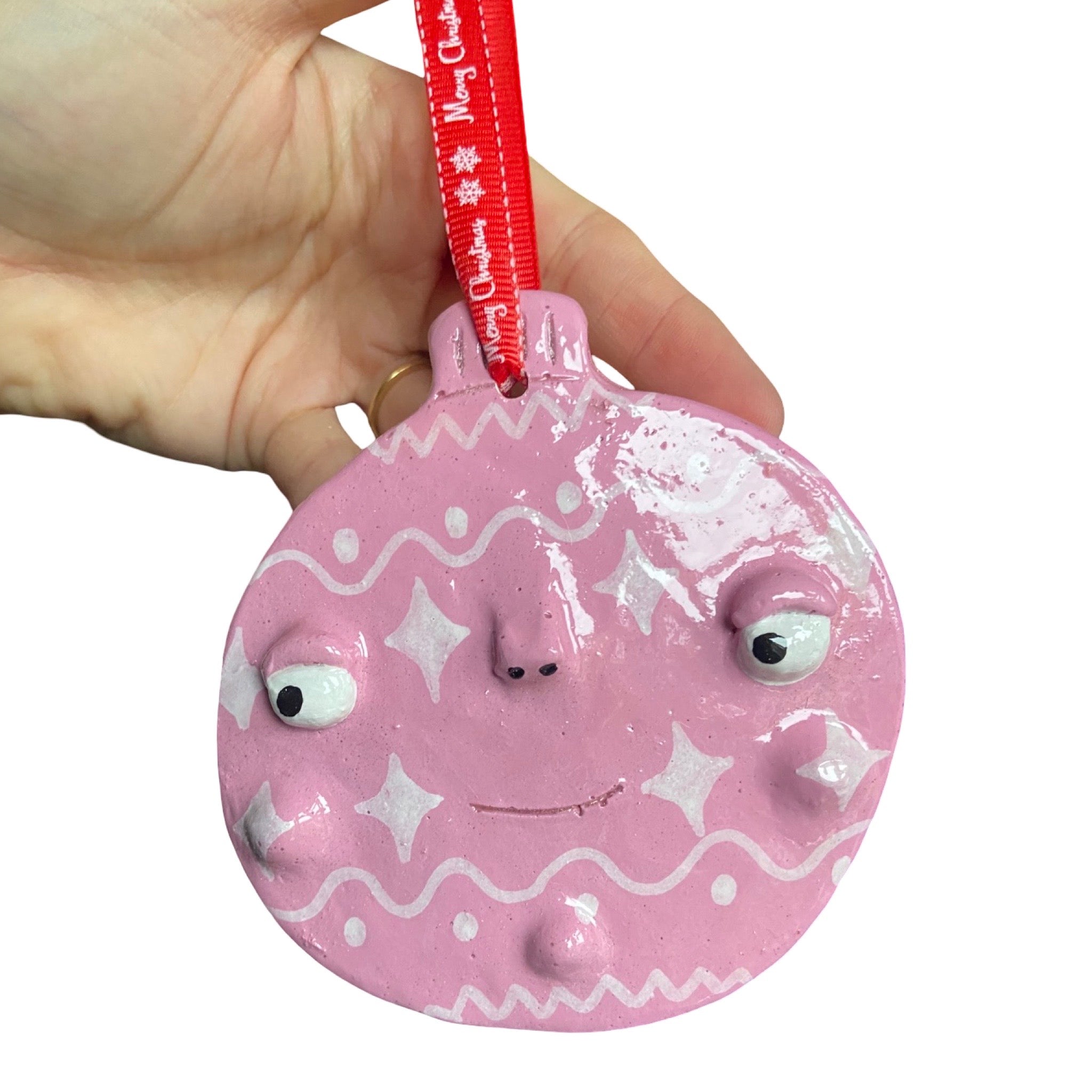 The cutest mischievous little decorations to add a little touch of Ponky to your Christmas decorations! Comes with a piece of christmassy twine so that you can hang your decorations wherever you want, on the tree or around the house! Each bauble is hand-painted details, they may have small bubbles on the back but this only adds to their handmade charm. The cutest gift for a pal too!!