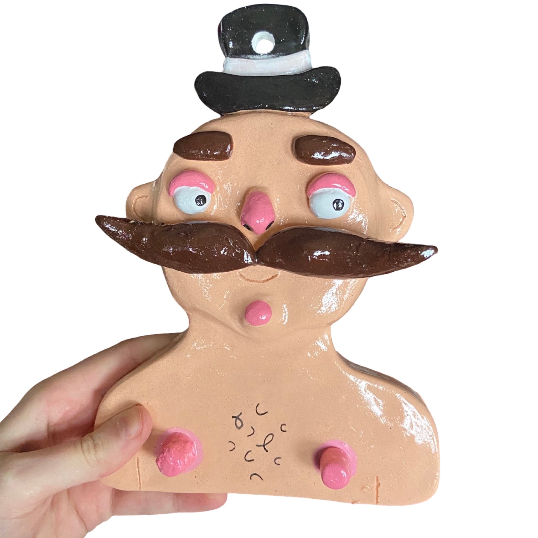 This quirky key holder features a very groovy gentleman with a fabulous moustache and cheeky nipples designed to hold up to four sets of keys (on his nipples and moustach!) Easy to install by placing onto a standard screw or hook, it adds a playful yet practical touch to your entryway!! Beyond keys, it’s also perfect for hanging jewellery, combining functionality with unique style. Ideal for those seeking an unconventional and fun solution to organising essentials! Available in other colour ways too!